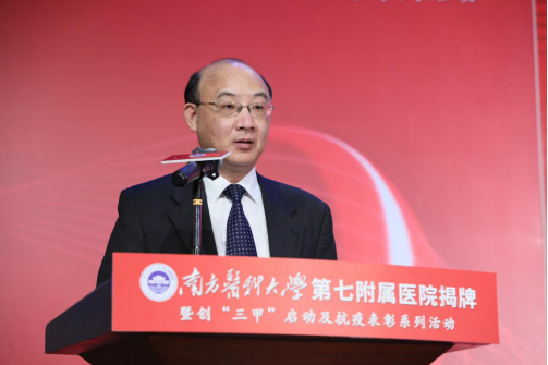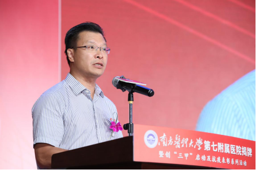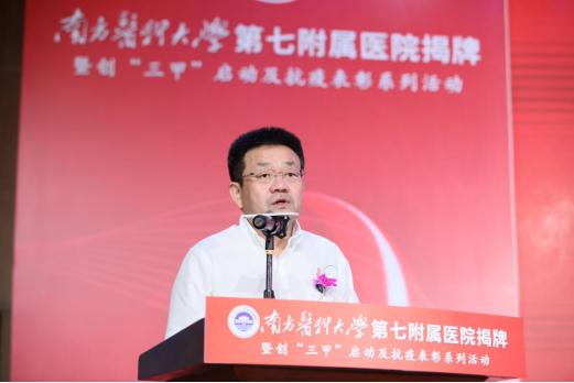 黎孟枫表示,4年前,南方医科大学与南海区人民政府、里水镇人民政府正式签约三方共建三甲综合医院——南方医科大学南海医院,携手打造基层医疗卫生样板。从那时起,南方医科大学就已扎入这片土地,与南海人民成为血脉相连的一家人。4年来,南海医院通过打造“全科医学+”医共体推动内涵发展与学科建设齐头并进,从二甲医院晋升为三级医院,各项业务指标稳步增长,成为南方医科大学融入南海、服务南海的重要平台和纽带。4年后的今天,我们在此共同见证南海医院揭牌“南方医科大学第七附属医院”和启动“三甲”工作,希望医院秉持“大南医”理念,以创三甲为抓手,以筹建“全科医学学院”为契机,全面推进全科医学建设发展,将全科医学打造成为医院最具竞争力的闪亮品牌,为南方医科大学全科医学的高水平发展,为服务区域卫生事业发展做出新的更大的贡献。