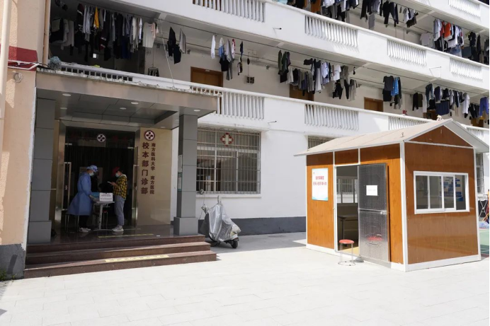 校医院加强就诊人员预检分诊,严格核对健康码、行程卡,填报健康申报卡,询问流行病学史;加强发热学生的监管;每日对诊区范围进行消毒,对健康观察区工作人员进行防疫培训。