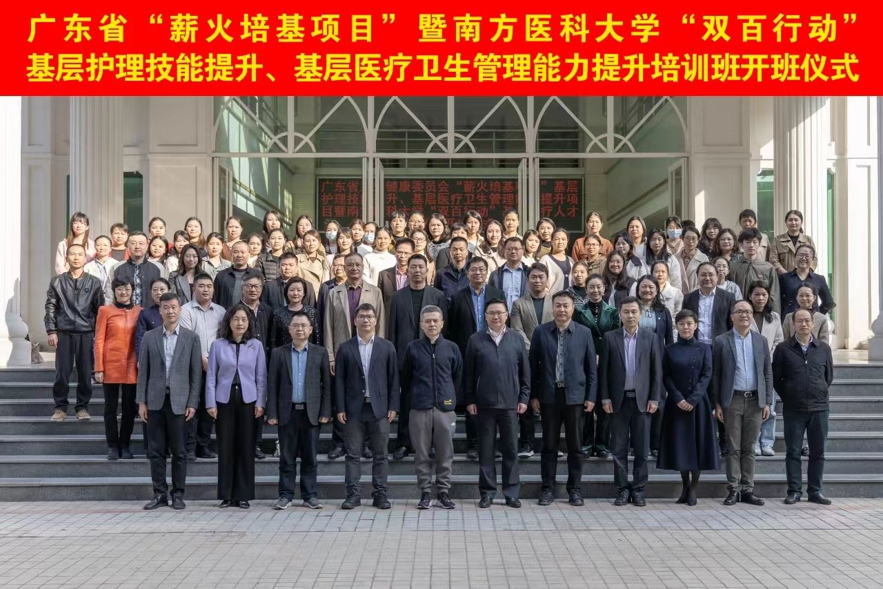 1月8日,广东省“薪火培基项目”暨学校“双百行动”基层护理技能提升、基层医疗卫生管理能力提升培训班开班,省卫健委基层卫生健康处副处长陈浩出席开班仪式并讲话,学校“双百行动”领导小组副组长、党委副书记张锅红、仁化县委副书记谢建发、五华县卫生健康局局长张祝平出席并致辞。开班仪式由学校党委常委、组织部(统战部)部长曾莉主持。