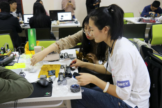 一个月的学习都在大家的课余时间进行,各个创客学员满腔热忱。公共卫生学院的王紫棋同学说,她现在觉得当初选择了留下非常正确,也越来越为自己是第一批参与者而感到幸运与满足,“我已经不用再傻傻的只会盯着电脑了,遇到问题也能自己先进行思考,看是不是能解决,每做出一个自己的小成品,都会不由自主开心好半天。”