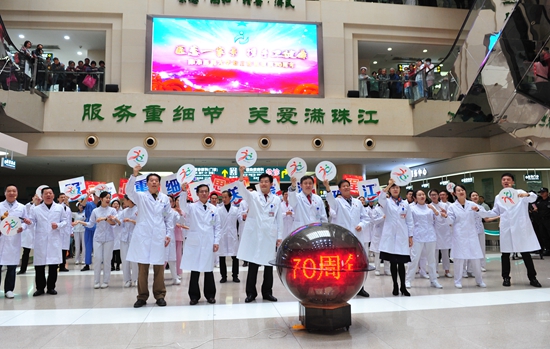 医患携手快闪,派送爱心药包,除特需门诊、名医门诊,医院门诊免诊查费……为庆祝建院70周年,珠江医院举行了系列惠民活动。