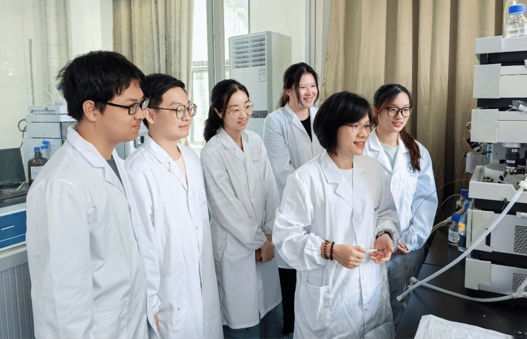 粤港澳新药筛选联合实验室主任毕惠嫦教授(右二)指导学生开展实验