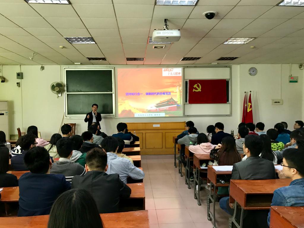 入党宣誓仪式后,全体党员聆听了南方医科大学理论讲师团谢传仓教授专题辅导报告——《坚持知行合一,做新时代合格党员》。