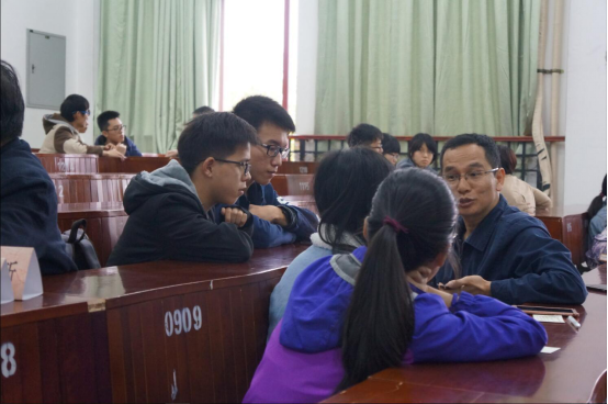 随后进行了师生见面、互换联系卡等互动交流。4201、4202两个大教室座无虚席,师生交流的场面热闹又温馨。有的新进教师初次来到顺德校区,师生见面后,学生们陪着老师一边参观美丽的校园,一边交谈……一个多小时的互动中,学生向导师汇报了一学期的学习和生活情况,导师们就个人规划、品德修养、学习方法等方面为学生指点迷津。