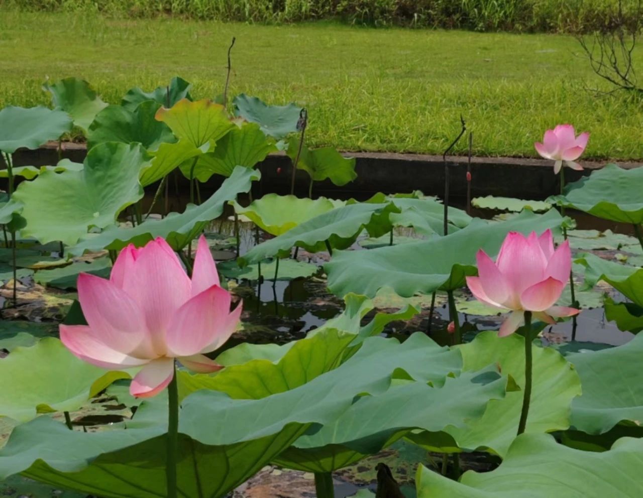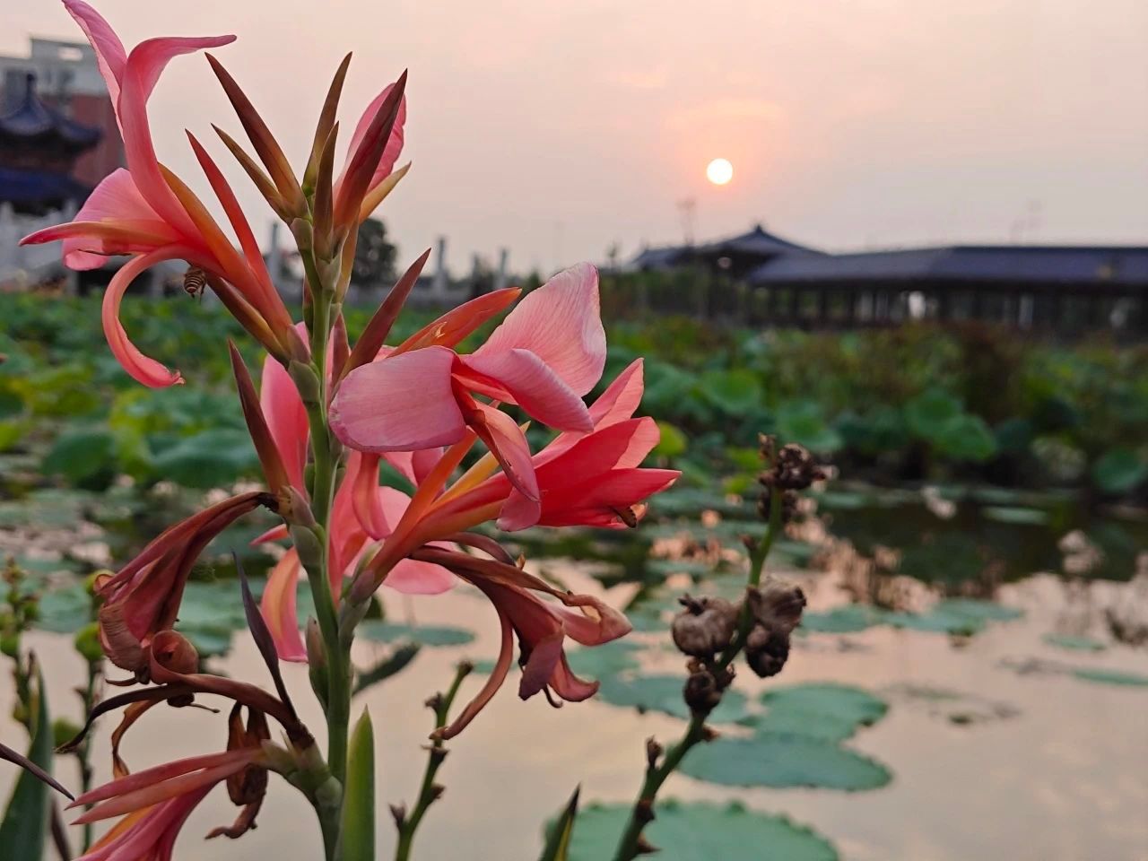 偶然在杏园漫步,发现池里的荷花开得正盛,它们香远益清,亭亭净植,给予了我心灵的“小满”。