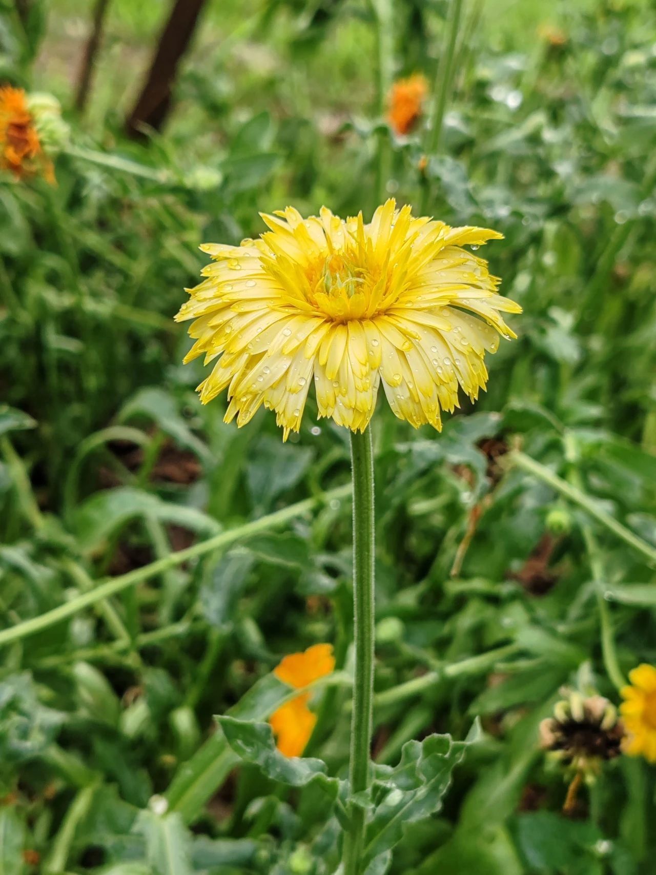 浇湿了盛开的雏菊