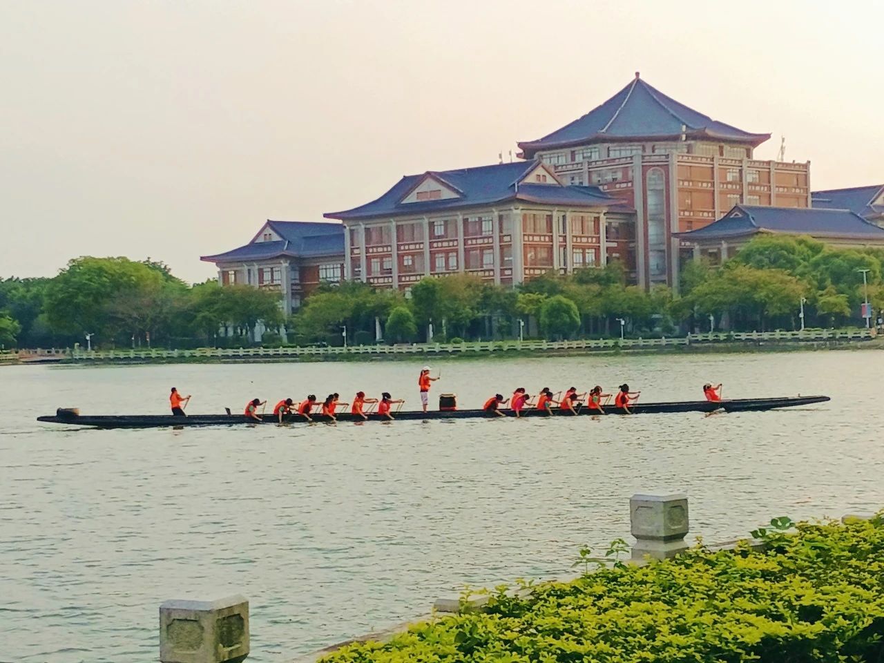景湖上的龙舟队飞桨逐浪