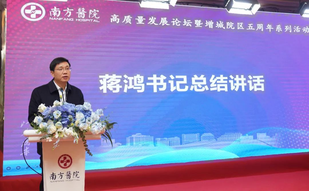 南方医院党委书记蒋鸿为本次论坛作总结讲话,他深刻剖析了医院面对当前的发展问题和挑战,并提出五点希望:环境形势越是严峻,越要凝聚更广泛的发展共识;行业竞争越是激烈,越要谋划更长远的发展规划;突破突围越是困难,越要拿出更有效的改革举措;监管要求越是严格,越要重视更规范的运营管理;外界杂音越是纷扰,越要营造更浓厚的文化氛围。蒋鸿指出,明年是医院从军队转到地方20周年的重要时间节点,全体南医人要重整行装,用初心和使命凝聚起继续前行的力量,奋力开启南医二次创业新征程,追逐新时代南医梦想。