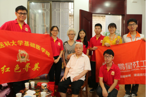 为铭记光辉历史,凝聚奋进力量,继承和发扬革命先辈的光荣传统和优良作风,增强学子民族自信心和自豪感,基础医学院“红色寻英”社会实践团队于8月25日-27日赴佛山市顺德区开展“筑梦引航·传承红色基因——青年大学生红色之旅接力行”活动。此项活动由学院老师张倩雯带队,学生党员、入党积极分子和团员代表共计11人参加,团队成员分别探访了三名在顺德区生活的抗战老军人,通过倾听老一辈军人的抗战故事,了解革命历史,接受红色教育,传承革命精神。