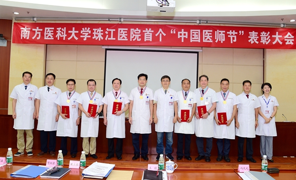 为庆祝首个“中国医师节”,提升珠江医院医师的临床专业技术水平和综合业务能力,进一步提高医疗质量和医疗安全,8月30日下午,珠江医院举行“尊医重卫,共享健康”医师节主题表彰大会,表彰了一批医德高尚、医术精湛、勇于创新、服务优质、医教研成果显著的“珠江医师”。全体院领导及机关管理干部、科室主任、获奖者代表以及今年被广东省卫计委评为“广东省杰出青年医学人才”的38名优秀青年医师,共计300余人参加大会。会议由医院党委书记黄立农主持。