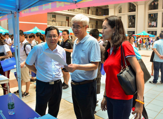副校长高天明、研究生院等单位领导来到迎新现场,视察迎新进展,对现场工作进行了指导,并慰问了现场工作人员,勉励大家以十足的热情迎接新生加入南医大家庭。