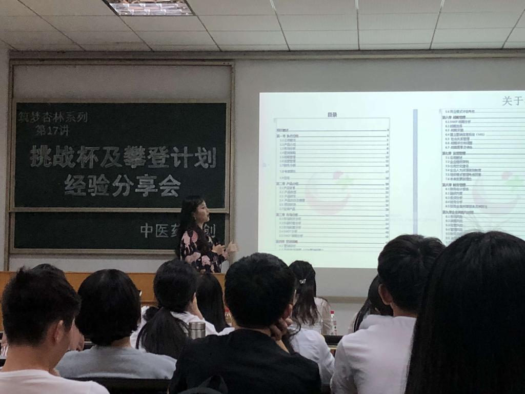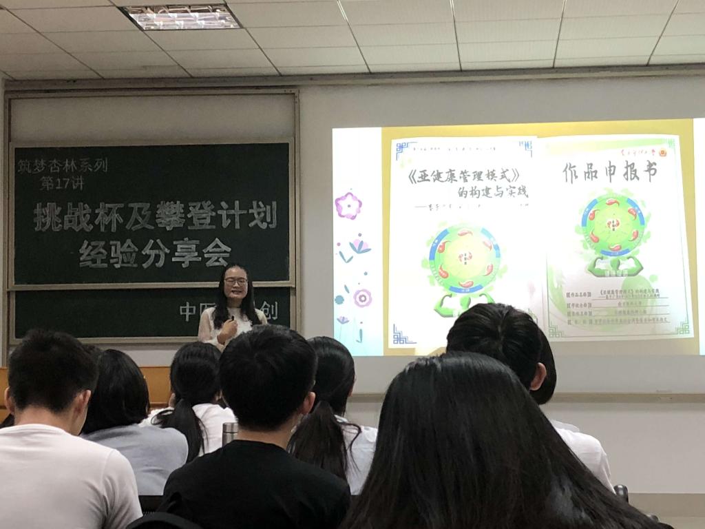 10月30日晚,中医药学院“筑梦杏林”系列讲座第17讲“挑战杯经验分享交流会”开讲。分享会主要分为两个环节:“小挑”省赛金奖获得者王媛分享创新创业类比赛参赛经验;“大挑”国赛一等奖获得者陈洁瑜畅谈大挑心路历程及如何让大挑作品更加出色。恰逢“挑战杯”及“攀登计划”校赛进行时,讲座的“干货”分享受到同学热烈欢迎,吸引校本部近百人“取经”。