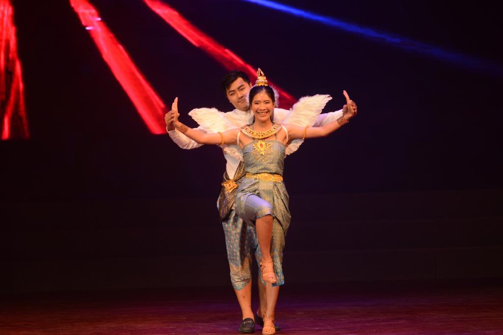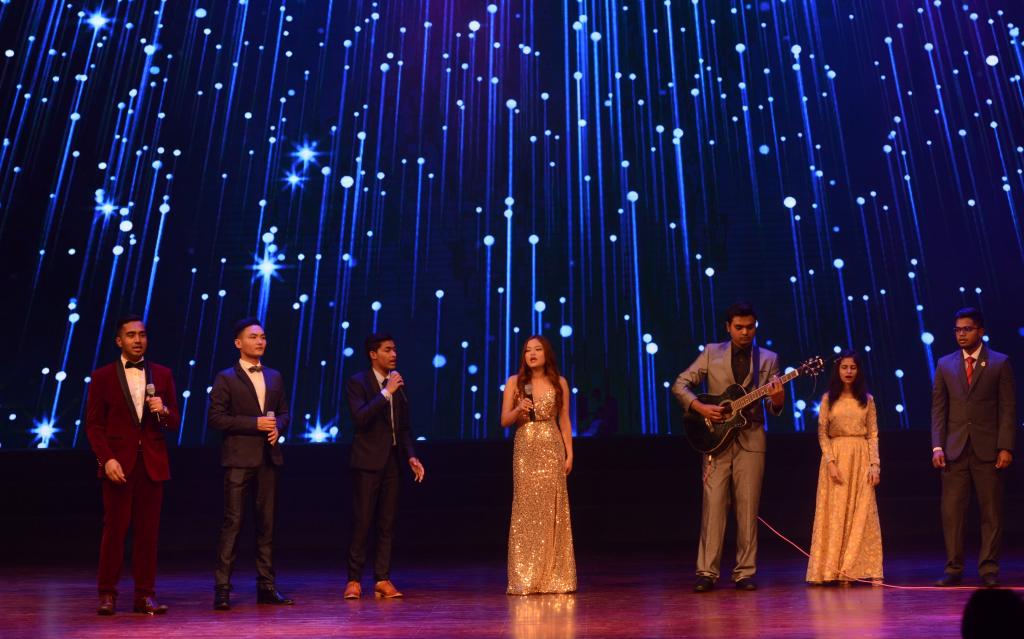 来自不同国家和地区的南医留学生们以各具风情特色的歌舞表演为大家献上了一场国际文化交流的盛宴。开场节目《异域霓裳》中,不同肤色的面孔、独特的服装和特具风情的台步呈现了一台精彩绝伦的异域时装秀;肚皮舞《舞动青春》中动感的音乐、精致的服饰和婀娜的舞姿引得台下喝彩声、掌声不断;歌曲表演《爱的语言》中,低沉有力的男声遇上灵动清澈的女声,中文、英文、印地语和孟加拉语四种语言的歌声撩动着现场观众的心弦,完美诠释了爱的无国界;苏菲舞《寂静的夜》的舞者们身着蓝白相间的服装,在幽美的阿拉伯音乐中旋转出神秘的色彩;由陈君带领的师生合唱《相亲相爱》用或轻快、或活泼的歌声将全场气氛推向高潮。哑剧《尽情地笑吧》借用“卓别林”的破礼帽和小胡子,以夸张和滑稽的动作和表情回顾了创伤后应激障碍症(PSD)病人的故事,希望能引起大众对患有PSD病人的关注;印度舞《神采飞扬》中三种不同派别的舞蹈在音乐的此起彼伏中交相辉映,她们脚步如闪电,手势如春雨、就像沉默的火焰突然迸发;朗诵《汉语情 京剧情 中国情》中三名分别来自越南、赞比亚和赤道几内亚的学生分别讲述了自己和中国结缘的点点滴滴,汉语学习道路上遇到的挫折以及他们不一样的青春故事引起了现场留学生的共鸣;非洲舞《遥远的部落》的舞者们随着音乐鼓点的逐渐加强,时而欢快点步、时而用力甩头、时而跳跃升腾;毛里求斯塞卡舞《阳光,沙滩》用舞动的红裙把毛里求斯人民奔放的热情辐射到现场的每个角落;歌曲串烧《欢乐传递》借着动感而欢快的旋律给整场晚会画上了圆满的句号。