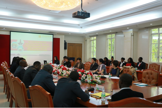 文民刚对双方在留学生招生、高端人才培养、科学研究等方面拓展合作给予厚望。陈君简单介绍了在“一带一路”倡议下,我校在医学人才培养、对外援助项目方面所做的努力,并就招收赞比亚来华留学生、赞比亚医学领域高级人才培养、赞比亚孔子学院建设等工作做了深入报告。Penelope Mwenya Mapoma简要介绍了赞比亚高等教育信贷和奖学金委员会基本情况、高等教育发展现状及奖学金项目等,并希望我校能为赞比亚在医学生培养、高级医学人才培训等方面给予大力支持。