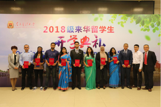 11月16日,我校2018级来华留学生开学典礼在枫叶厅举行。此次我校共招收了来自46个国家和地区的220名来华留学生,包含研究生61名,生源国新增了芬兰、菲律宾、牙买加、圣多美和普林西比、阿尔巴尼亚等五个国家。