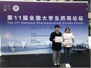12月7-9日,在第十一届“全国大学生药苑论坛”上,药学院陈金香指导的2015级药学(药物化学)专业学生刘宁撰写的 《小檗碱二聚体的合成及其对Cu2+、Ni2+和Co2+的时间响应》论文获创新成果二等奖及优秀壁报奖,杨洁指导2016级临床药学专业学生许家眭撰写的《帕拉米韦对甲型流感病毒早期感染的抑制作用》论文获创新成果二等奖。来自北京大学、复旦大学、中国药科大学等近百所院校的436名师生、153个项目参加了本次论坛。