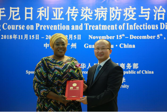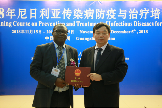 12月4日下午,我校承办的商务部援外短期培训项目“2018年尼日利亚传染病防疫与治疗培训班”结业仪式上,副校长文民刚为培训班学员颁发了结业证书,称他们永远都是南方医科大学的一份子,欢迎常回家看看!