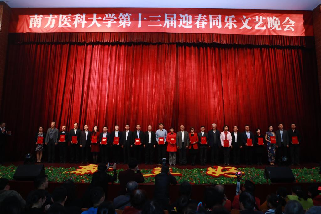 晚会开场前,举行了第十三届迎春同乐文艺晚会节目选拔赛颁奖仪式。在发展规划处范耿、南方医院廖冬梅、卫生管理学院李紫剑、口腔医院吴越四位主持人的介绍下,全体校领导上台为获得舞蹈类、声乐类、语言类和其他类奖项的各获奖单位代表颁奖(文后附获奖名单),感谢他们及所有工作人员为晚会付出的辛勤劳动。