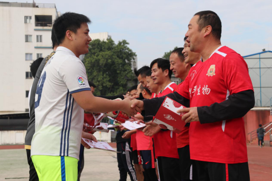 赛后,全体人员合影留念。校团委书记陈旭坚、教工足协周慈麟教授分别为教工联队、学生联队颁发奖杯与锦旗。
