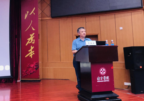 上午场首先由2020年的广东省援鄂首批医疗队队长、抗疫英雄郭亚兵做报告,他以“新冠疫情之医生视角”为题,与大家分享了在武汉的难忘经历,嘱托广大培训生在行医路上要努力磨炼专业技术的深度与广度,提高专业内外的协作能力;也要锻炼身体健康体魄,保持对新生事物的敏感性和学习热情,锐意创新不断进取。