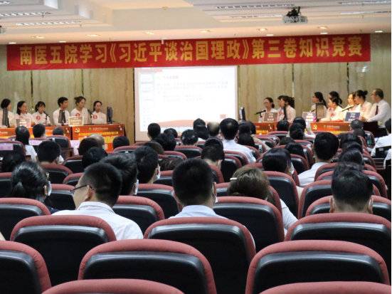 11月19日,五附院举办以“学思用•知信行”为主题的学习《习近平谈治国理政》第三卷知识竞赛决赛。从化区委宣传部调研员黎志平、学校党委宣传部副部长王威,五附院领导班子、各部门(科室)负责人、党支部书记、支部委员等出席了活动。