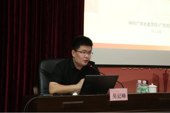 吴记峰以“不忘初心,牢记使命,全面推进党的建设伟大工程”为题,以高度的政治站位、广阔的历史视野、严谨的理论见解,结合工作生活经验和社会实际,从“深刻理解永恒命题——历史性大变革中如何把人重新组织起来”、“深度思考疫情大考——非常规性状态下如何以党组织组织社会”、“深入学习伟大思想——现代化新征程中如何提升党组织组织力”三个方面详细阐述如何抓好基层党建,并强调在历史延续性下,基层党建应把握好党组织自身建设、党组织作用的发挥这两个重点。
