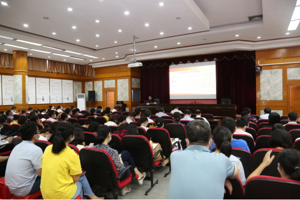 11月20日下午,中西医结合医院邀请中共广东省委党校副教授吴记峰来院讲专题党课。会议由医院党委书记严冬主持,全院中层干部、全体党员共110余人参会。