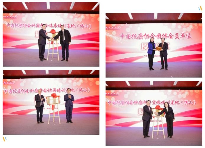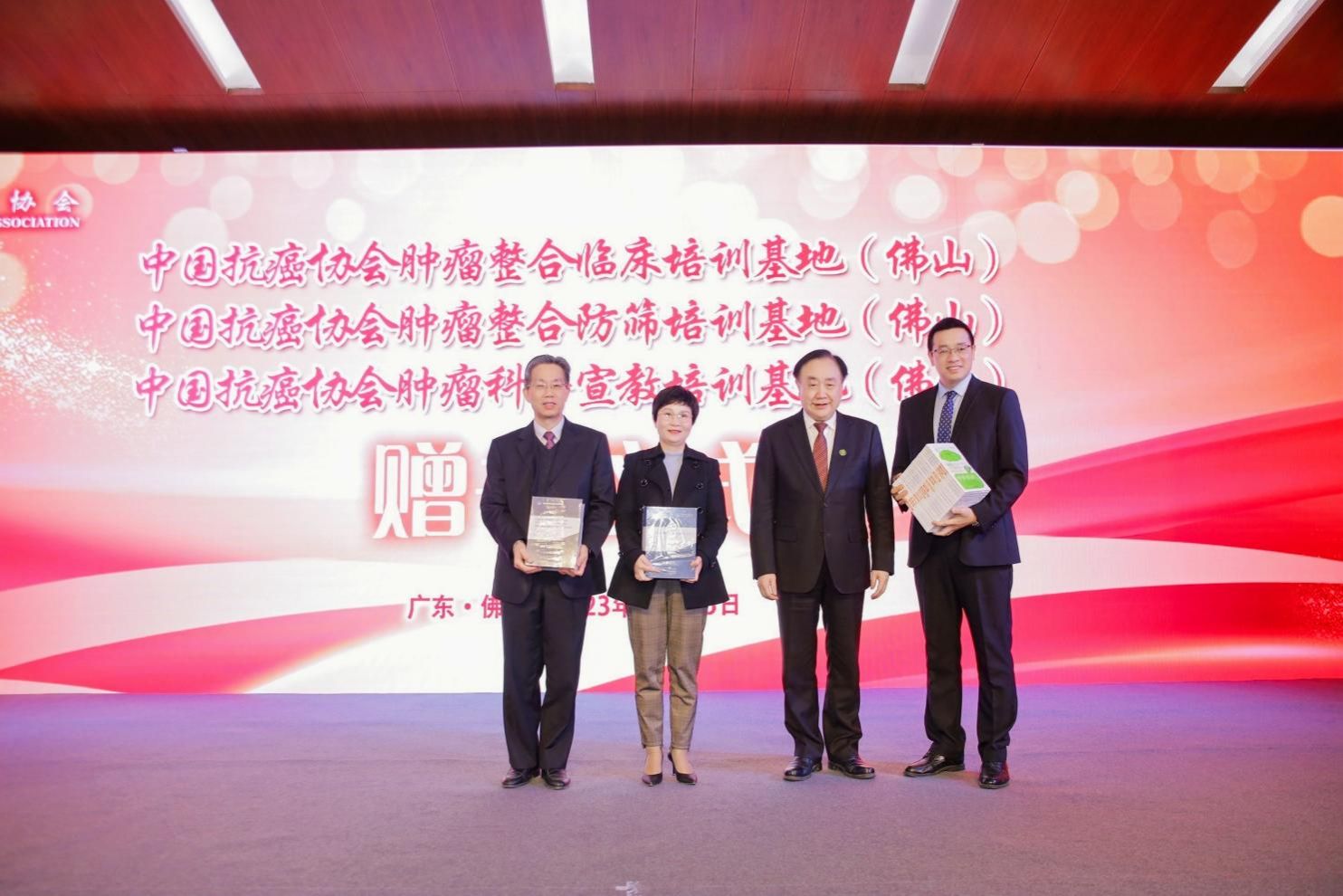 会议期间,中国抗癌协会肿瘤整合临床培训基地(佛山)、肿瘤整合防筛培训基地(佛山)、肿瘤科普宣教培训基地(佛山)三大基地揭牌,正式落户顺德医院。现场还举行了CACA指南赠书仪式。
