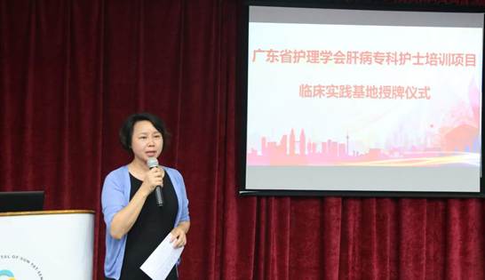 5月22日下午,广东省护理学会主办的第一届肝病专科护士培训项目举行临床实践基地授牌仪式,南方医院获批成为首批临床肝病专科护士培训基地。学会副主委陈妙霞,中山三院护理部和培训班负责人以及肝病领域护理骨干近百人参加了授牌仪式。