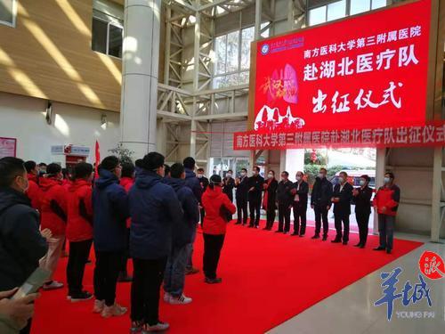 今日(28日)下午南方医科大学第三附属医院赴湖北医疗队出征。